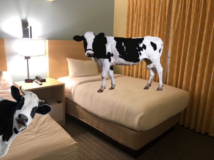 - Episoden åpner med at kua står midt i lobbyen på Hotel Cæsar, uanfektet av skrikende resepsjonister og forvirrede hotellgjester.